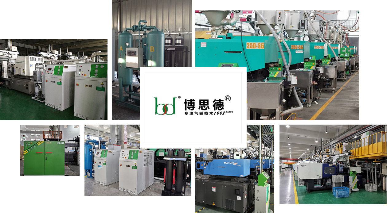 浙江博思德( BOSIDE) 機械有限公司 是專業(yè)從事氮氣輔助注塑成型設(shè)備的生產(chǎn)、銷售;氣輔注塑工藝及氣輔模具的研發(fā)、應(yīng)用;高壓氣體設(shè)備的生產(chǎn)、銷售及國外品牌代理等業(yè)務(wù)。主要經(jīng)營:氮氣發(fā)生器、高壓壓縮機、氮氣控制系統(tǒng)、氮氣模具制造、注塑成型生產(chǎn)等五大事業(yè)項目。我們有近二十年的氮氣輔助注塑成型(氣體輔助注塑成型)的生產(chǎn)及技術(shù)經(jīng)驗。
